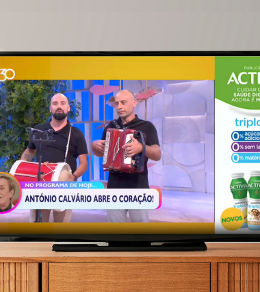 Espaço comercial exibido até ao máximo de 25% do ecrã em simultâneo com programas de entretenimento e desporto.