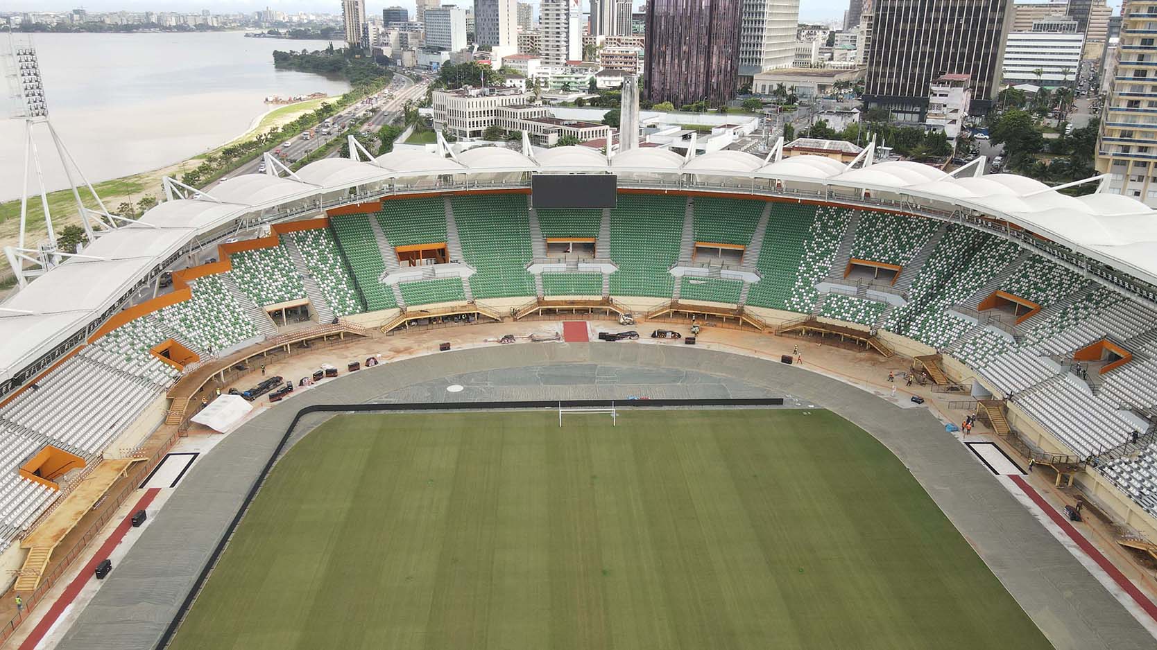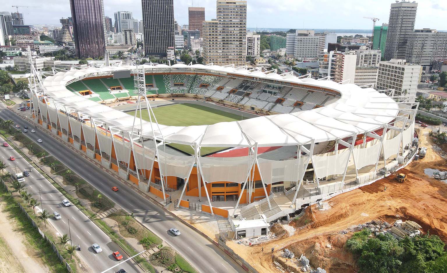 Inspirada nas referências e cultura locais, a arquitetura procurou criar um ícone marcante e contemporâneo para a cidade de Abidjan.